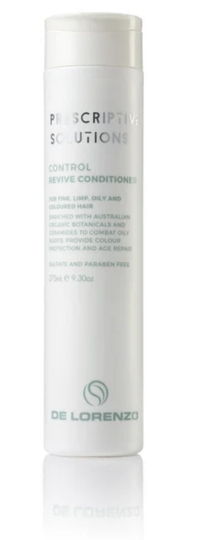 De Lorenzo Control Revive Conditioner is a light hydrating conditioner that restores weightless moisture and regulates oily roots, leaving hair freshly renewed with natural shine. Also provides colour protection while controlling flyaways. For fine, limp, very oily and coloured hair. Contains Australian organic extracts.