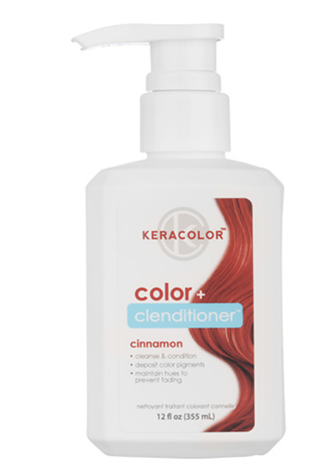 Keracolor Color Clenditioner Colour Shampoo in Cinnamon cleanses, nourishes and imparts gorgeous colour onto your hair! This non-lathering conditioning cleanser instantly deposits direct dye colour pigments with every wash. Perfect to maintain vibrant coloured hair and prevent fading, or mix it up between salon visits. Colours becoming more vibrant and longer lasting with every wash. Pigment can last up to 10-15 washes, depending on porosity and pre-lightened level!