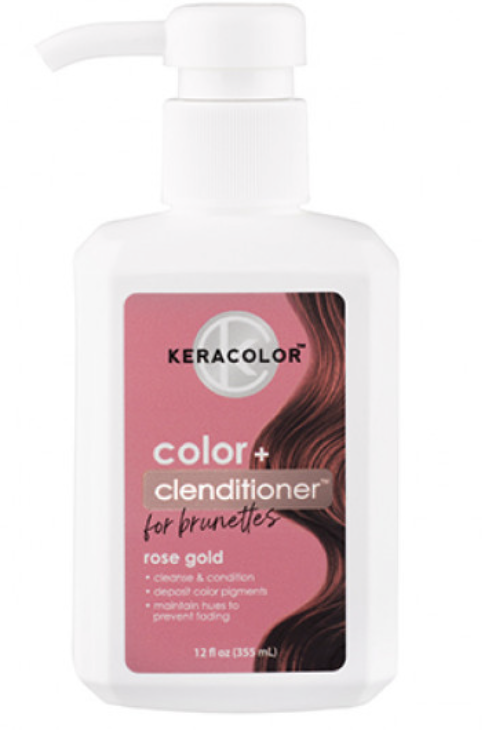 Introducing a special Keracolor collection just for brunettes. Keracolor Color + Clenditioner Colour Shampoo for Brunettes in Rose Gold is perfectly suited to brunettes looking for subtle, temporary change without commitment or needing to bleach hair. Colour while you cleanse with this non-lather, keratin-infused conditioning cleanser designed to instantly infuse semi-permanent colour into hair with every wash. Made in the USA. Kinder to both your hair and the environment. Kind ingredients include coconut oil, shea butter, rose hip oil, jojoba oil and almond oil.